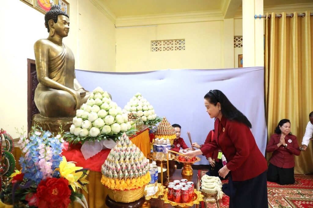 នាកិច្ចសំណេះសំណាលសួរសុខទុក្ខជាមួយប្រជាជនភៀសសឹកទាំងអស់ អ្នកម្ដាយមនុស្សធម៌ សម្តេចកិត្តិព្រឹទ្ធបណ្ឌិត ប៊ុន រ៉ានី ហ៊ុនសែន បានពាំនាំនូវព្រះរាជបន្ទូលរបស់ ព្រះករុណា ព្រះមហាក្សត្រ ជាអម្ចាស់ជីវិតលើត្បូង និងព្រះសវណីយ៍ សម្តេចព្រះមហាក្សត្រី ព្រះវររាជមាតាជាតិខ្មែរ ព្រះប្រធានកិត្តិយស កាកបាទក្រហមកម្ពុជា ជាទីគោរពសក្ការៈដ៏ខ្ពង់ខ្ពស់បំផុត ដែលព្រះអង្គទាំងទ្វេបានផ្តាំផ្ញើសួរសុខទុក្ខ និងក្តីនឹករលឹក ជាពិសេសការគិតគូរពីសុខទុក្ខប្រជានុរាស្ត្ររបស់ព្រះអង្គនៅគ្រប់ទីកន្លែង និងគ្រប់ពេលវេលា ព្រមទាំងសូមជូនពរបងប្អូនប្រជាពលរដ្ឋសូមមានសុខភាពល្អ ដើម្បីបន្តប្រកបរបរចិញ្ចឹមជីវិតតទៅមុខទៀត។