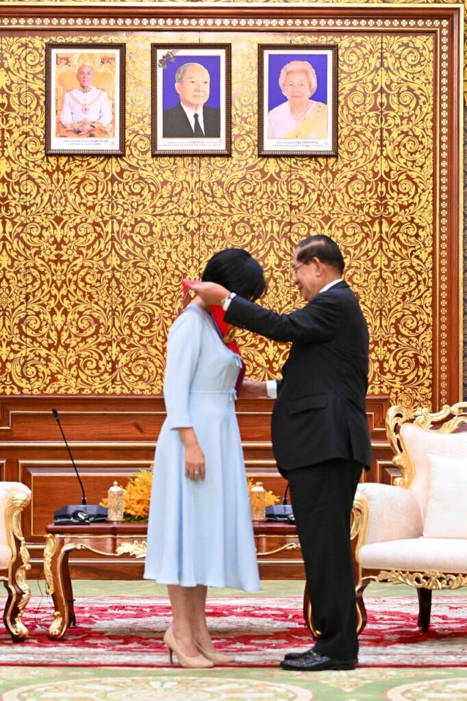 (ភ្នំពេញ)៖ សម្តេចតេជោ ហ៊ុន សែន ប្រមុខរដ្ឋស្តីទីកម្ពុជា នៅព្រឹកថ្ងៃទី០៤ ខែមីនា ឆ្នាំ២០២៦នេះ បានអនុញ្ញាតឱ្យ លោកស្រី Teo Lay Cheng ឯកអគ្គរដ្ឋទូតនៃសាធារណរដ្ឋសឹង្ហបុរីប្រចាំនៅកម្ពុជា ចូលជួបសម្ដែងការគួរសម និងជម្រាបលា ដោយបញ្ចប់បេសកកម្មការទូតនៅកម្ពុជា នៅវិមានសាមគ្គីភាពនៃព្រឹទ្ធសភាជាតិ រាជធានីភ្នំពេញ៕