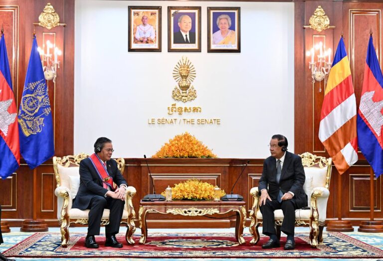 (ភ្នំពេញ)៖ សម្តេចតេជោ ហ៊ុន សែន ប្រធានព្រឹទ្ធសភានៃកម្ពុជា នៅព្រឹកថ្ងៃទី២៦ ខែមករា ឆ្នាំ២០២៦នេះ អនុញ្ញាតឱ្យលោក Buakeo Phumvongsay ឯកអគ្គរដ្ឋទូតនៃសាធារណរដ្ឋប្រជាធិបតេយ្យប្រជាមានិតឡាវ ប្រចាំកម្ពុជា ចូលជួបសម្តែងការគួរសម និងជម្រាបលា នៅវិមានសាមគ្គីភាព រាជធានីភ្នំពេញ។